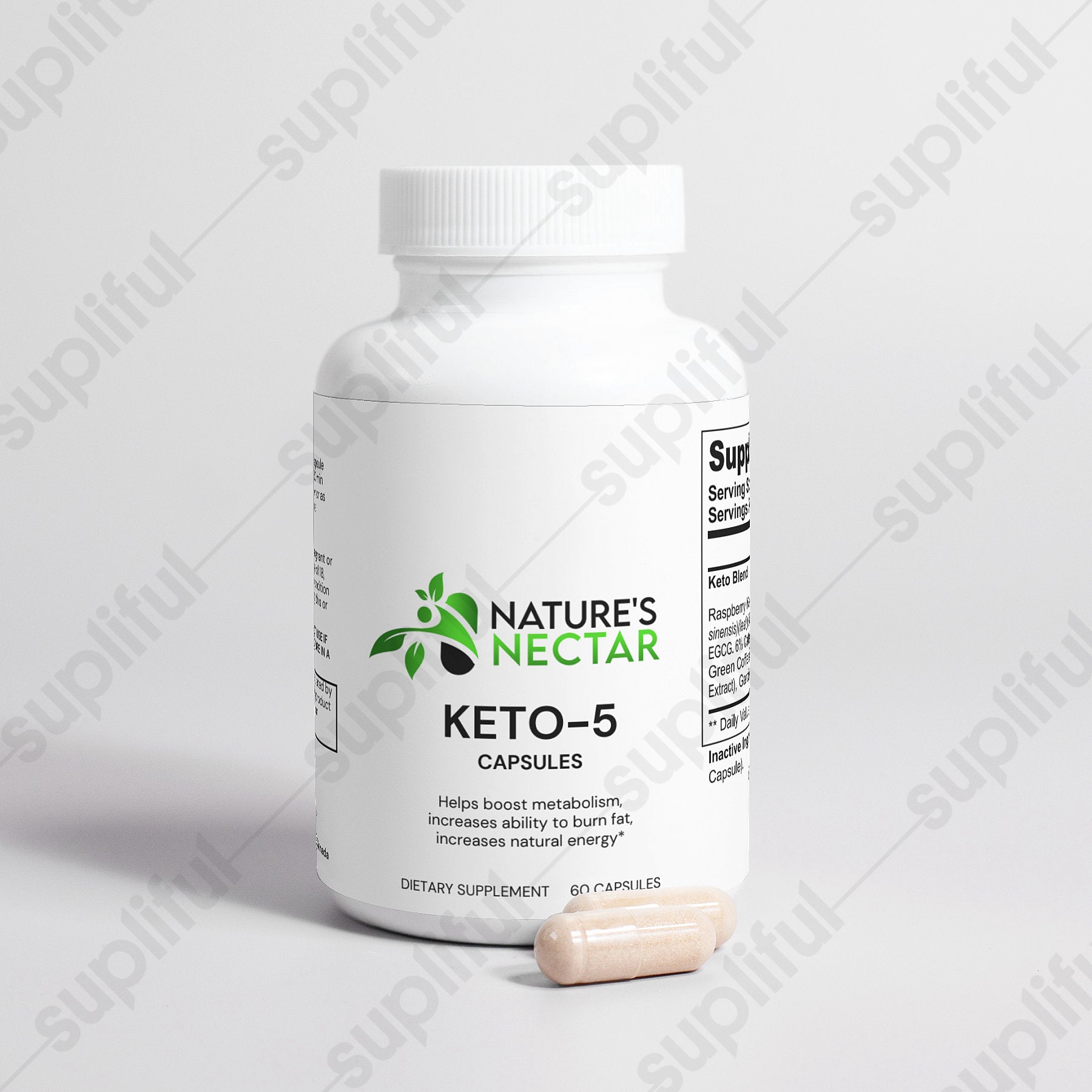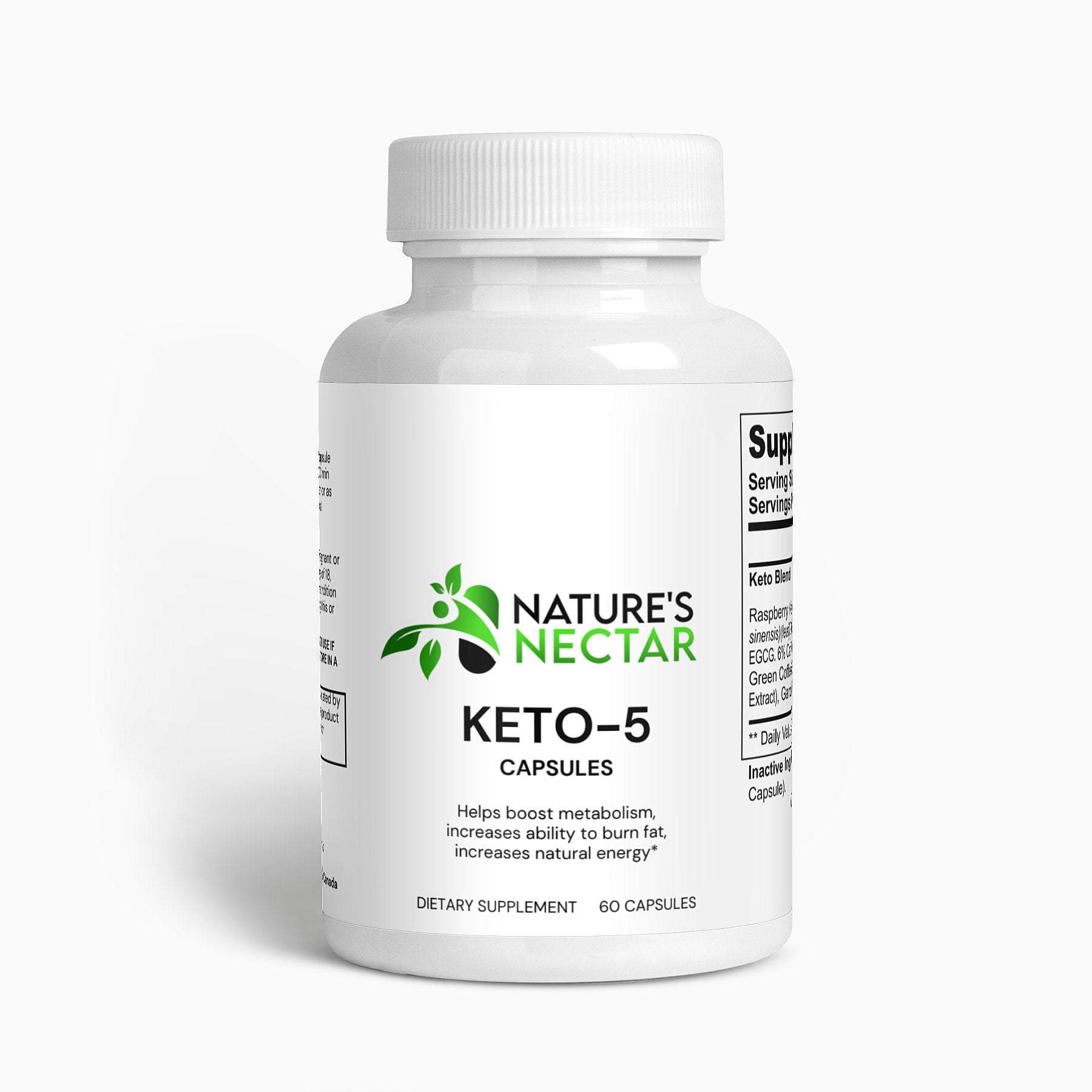 Ingredients: Keto Blend (Raspberry Ketone, Green Tea, Caffeine Anhydrous, Green Coffee Bean, Garcinia Cambogia (fruit), Cellulose (Vegetable Capsule).
