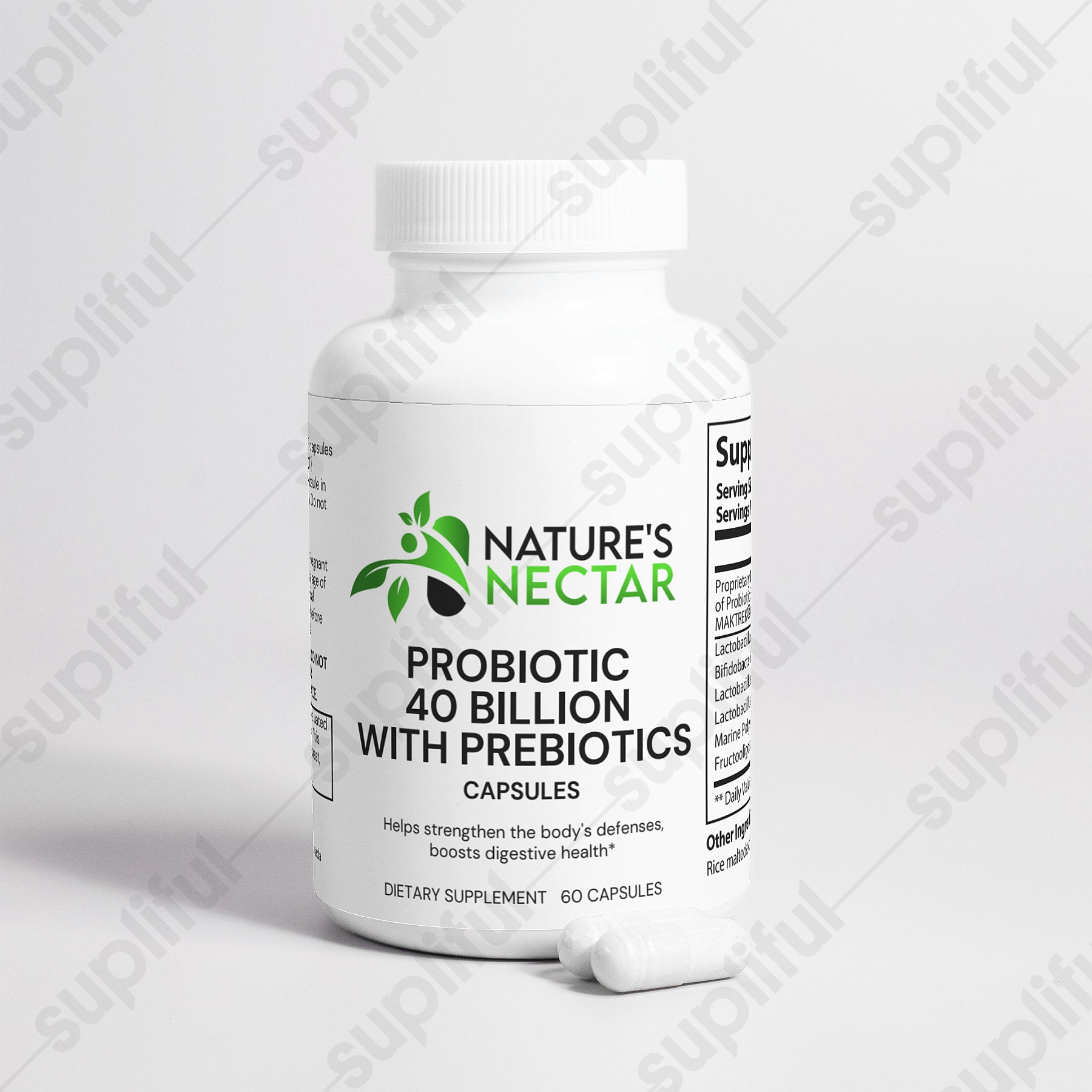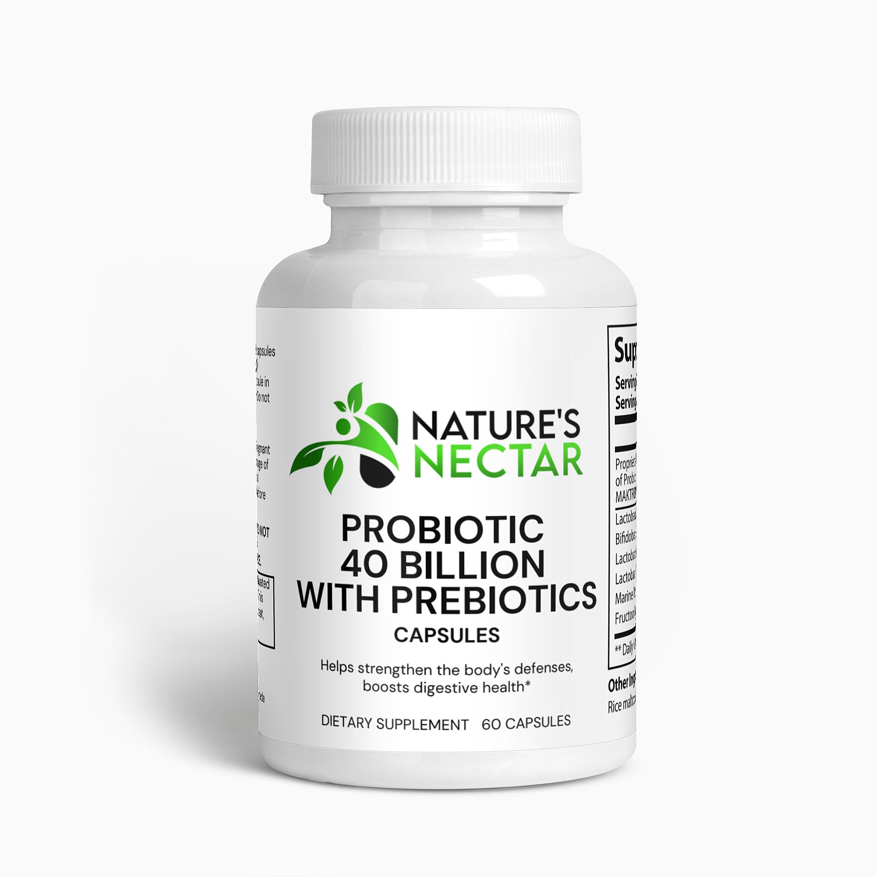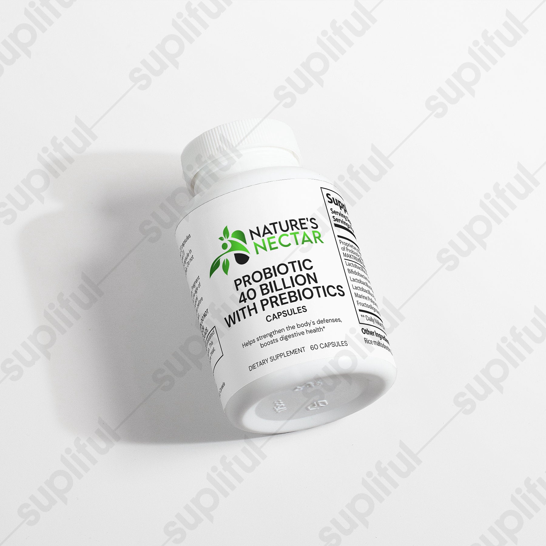 Probiotic 40 Billion with Prebiotics is a blend of four probiotic strains: Lactobacillus Acidophilus, Bifidobacterium Lactis, Lactobacillus Plantarum, and Lactobacillus Paracasei.